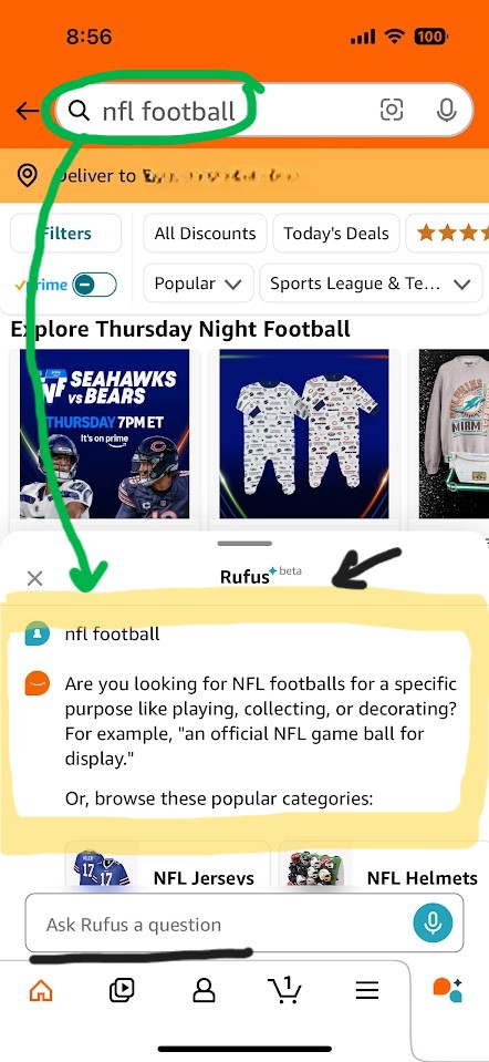Amazon’s Rufus, Beta is bringing more conversation to search and browse. Take this example for a simple search of an NFL Football. Well it is deep into the NFL season and the 2024 season Super Bowl is right around the corner. So why not.